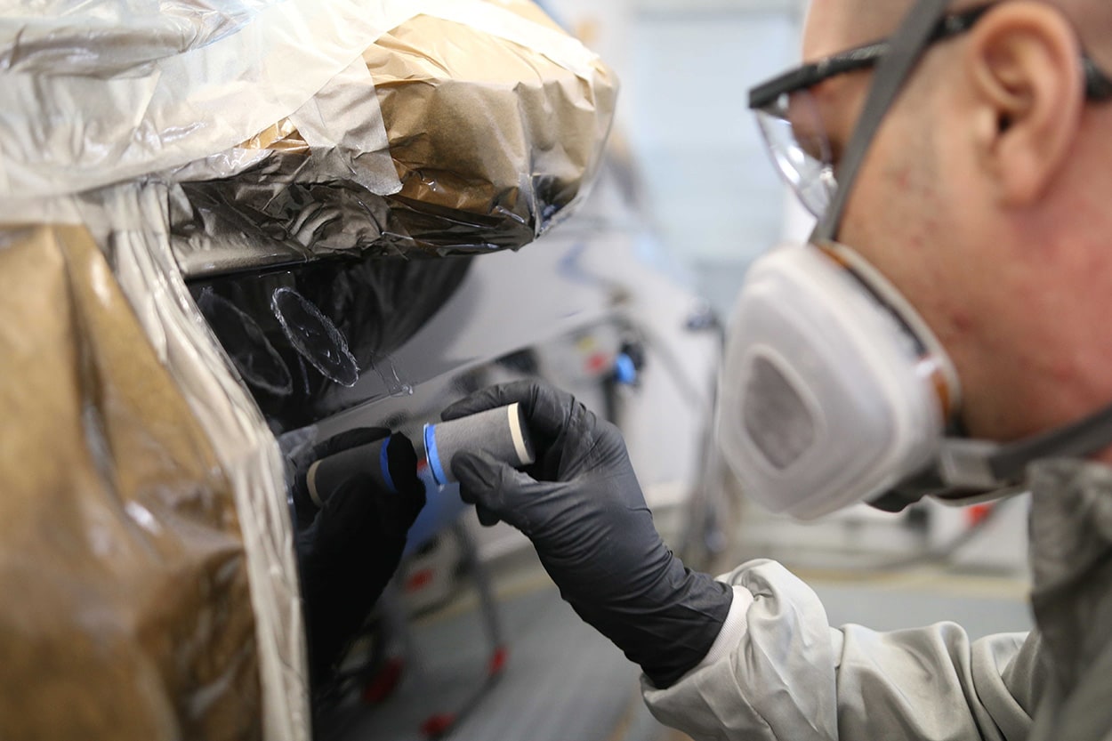 Another innovative feature is a moving booth from Spraybooth Technology Ltd. (STL). One of only a few used in Europe, it’s perfect for spot repair. And in the Advanced Mixing Room, colors are measured and selected using our digital color application MixitTM and AutomatchicTM , our spectrophotometer – part of our digital transformation of the painting process.